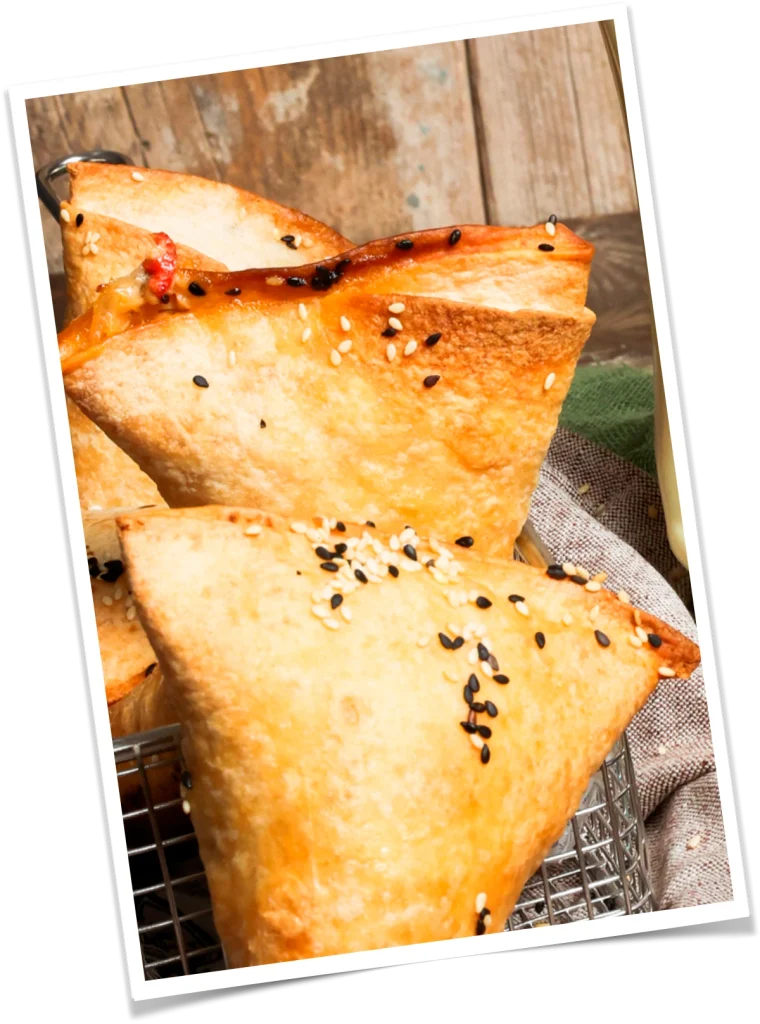 Προθερμαίνουμε τον φούρνο στον αέρα, στους 200°C. Σε ένα μικρό μπολάκι ανακατεύουμε το αλεύρι με το νερό, για να δημιουργήσουμε μία κόλλα για τα πιτάκια. Κόβουμε τις τορτίγιες στη μέση, διπλώνουμε σε σχήμα κώνου το κάθε μισό και κολλάμε, απλώνοντας με ένα πινέλο την αλευρόκολλα που φτιάξαμε. Γεμίζουμε τον κάθε κώνο με 1 κ.σ. από την τονοσαλάτα, μέχρι να τελειώσει η γέμισή μας. Αλείφουμε και το πάνω μέρος με λίγη αλευρόκολλα και κλείνουμε καλά με τα δάχτυλά μας, πιέζοντας ελαφρά. Σε ένα ταψί 26×36 εκ. στρώνουμε αντικολλητικό χαρτί, τοποθετούμε τα πιτάκια, το ένα δίπλα στο άλλο και με ένα πινέλο αλείφουμε την επιφάνεια με το ελαιόλαδο και πασπαλίζουμε με τα δύο είδη από σουσάμι από πάνω. Ψήνουμε για 15 λεπτά, μέχρι να γίνουν χρυσαφένια και τραγανά. Αφήνουμε να κρυώσουν 5 λεπτά.